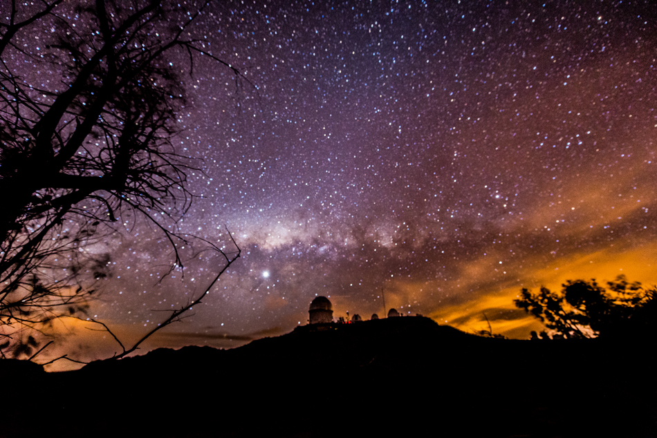 Early in the season, the clouds (and occasionally rain) interrupted this work. For example, in October of 2013, late-evening skies of plum-golden hue gave us the sunsets you see in today’s picture. Even though there were cloudy nights early in the season, this was anticipated. We’re using basic climate and weather models to plan our survey, so we can still observe fruitfully when visibility isn’t the best. Moreover, we can use the data from this past year to improve our survey strategy for the coming four years.